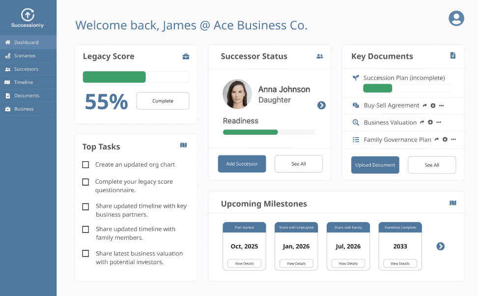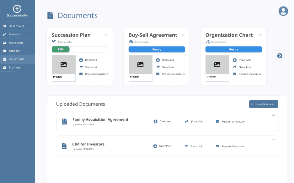 Generate essential docs like buy-sell agreements, power of attorney, and continuity plans with AI—tailored to your business profile.